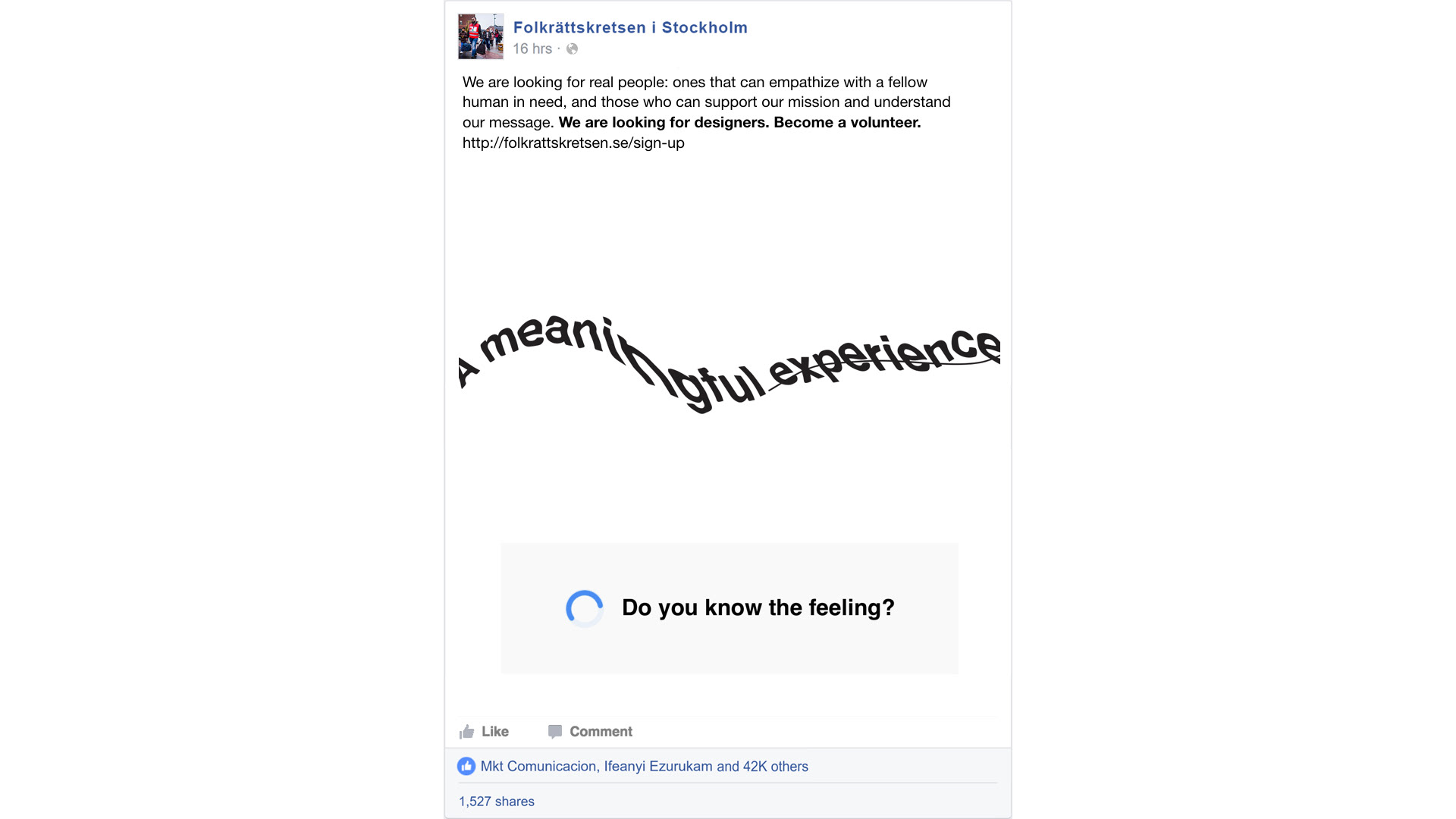 Background: Help Folkrättskretsen with creative ways to attract donors, members & volunteers, while implementing a new digital strategy that focuses on communication, experience and engagement. Insights: The complexity of human empathy is far from being mimicked or replicated in machines. Face-to-face interactions foster real connections on a human level. Approach: Artificial intelligence, machine learning, optimisation, and automation are taking over the mundane and menial tasks of the past. But there are still essential responsibilities that cannot be done by machines—those that require empathy with your fellow humankind. Result: We’d like to build a community that values basic human needs. The campaign is build on messages that people can relate to on different levels such as: lost, lonely, hopeless. This messages are distorted as the words are in reCAPTCHA and are used to make sure that the person receiving the message is a human and not a robot.