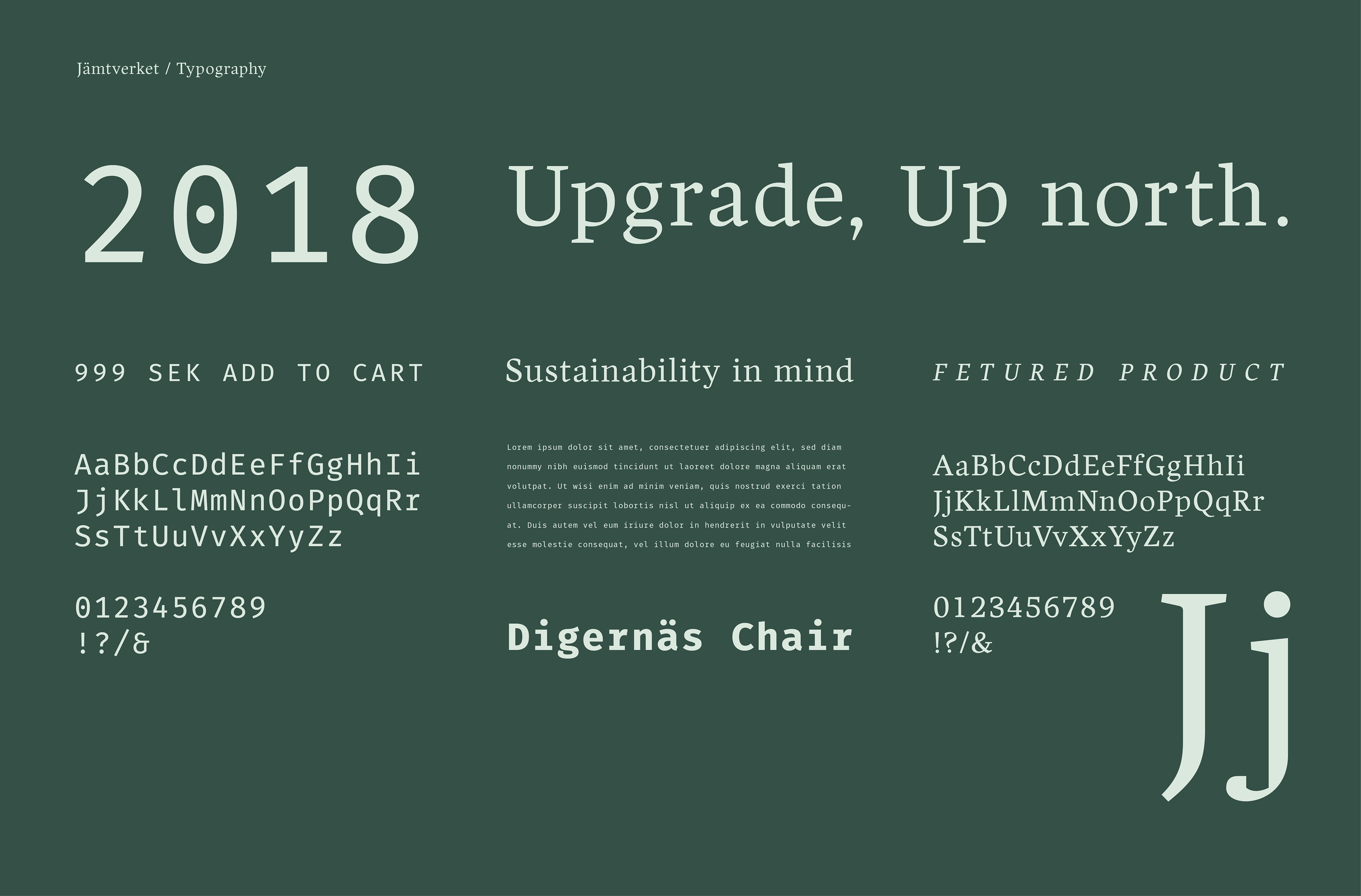 Background: Jämtverket is a furniture and interior design company in the northern part of Sweden. They are both designing and crafting the objects and upgrade old treasures. They asked me to create a visual identity for the brand. Approach: I wanted to create a brand that has a clear connection with their roots in Jämtland. Result: The logo is inspired from the iconic flag of the Jämtland Republic. Colors are inspired by the deep forest and imagery tells a story about the open landscapes and the feeling of being by yourself. Since they are using birch in their design I decided to design a typographic grid based on the marks of the birches, the horizontal lenticels.